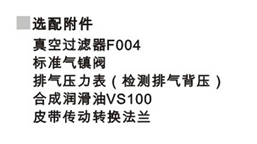 工作要求: 進口壓強在大于6500Pa時連續(xù)工作時間,不得超過3分鐘以免噴油引起泵損。